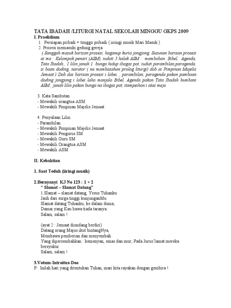 Di dalam nama allah bapa,. Tata ibadah perayaan natal sekolah minggu ii. Sedangkan liturgi minggu ii mengikuti calvin yang menempatkan pengakuan iman sesudah khotbah. Kita memasuki ibadah natal sekolah minggu pada saat ini. 9132019 liturgi natal sekolah minggu .